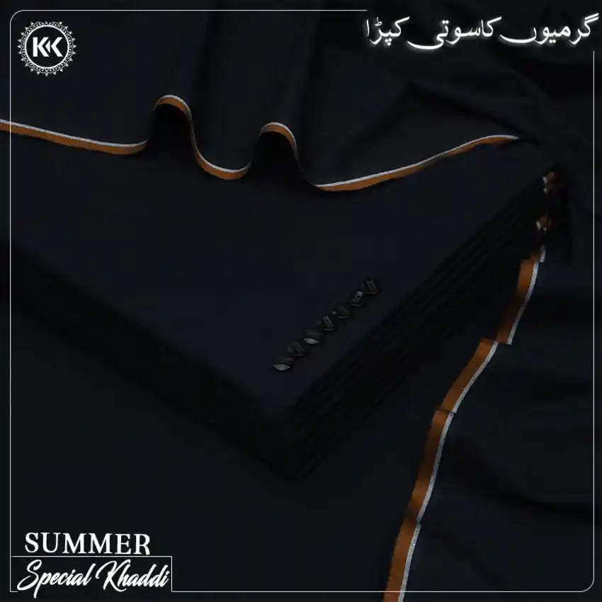 Summer Special Khaddi Fabric is a high-quality fabric specifically designed for the summer season. It is made from 100% cotton, which is a natural and breathable fiber, perfect for hot and humid weather. The fabric has a soft and lightweight texture, providing comfort and ease of movement during the warmer months.